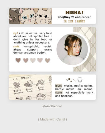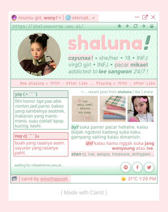 If the buyer says “up to you,” I’ll create the design based on my own style. But keep in mind — I only accept minor revisions after that, okay? 💖Q : What does “Credit ‘winothepooh’” mean?A : Every Carrd made by winothepooh will include a small credit text — “Carrd by winothepooh” — in the footer. This credit can be removed by paying an additional fee of IDR 4,000.Q : What are the title, description, and link on Carrd?A : Here’s how your Carrd will appear when shared on other platforms:LIT: title | LOL: link